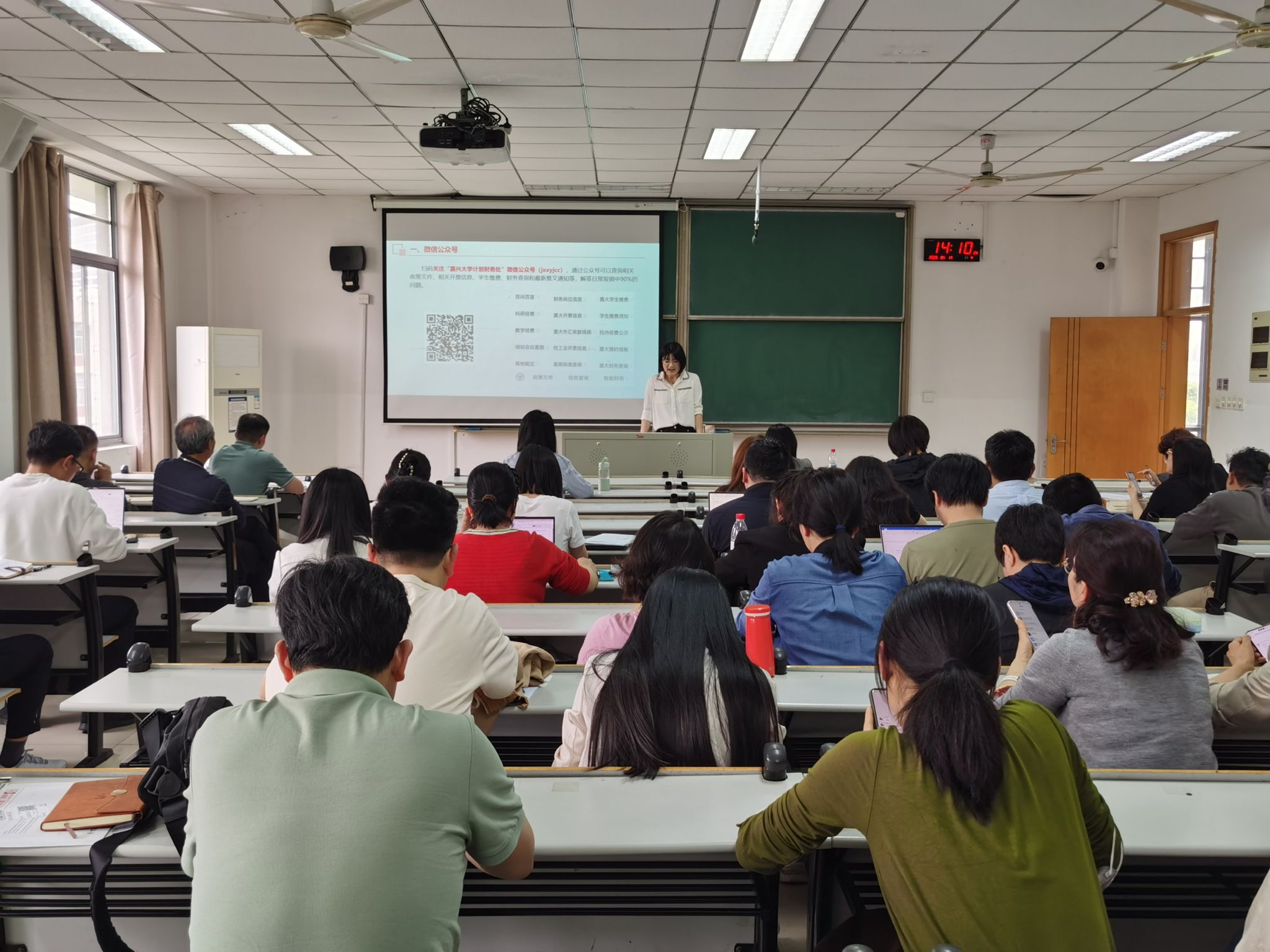 宣讲会上,计划财务处国库资金管理主管钟若菲就学校财务审批制度、差旅费管理、科研经费使用等教职工关切的问题进行了系统讲解。