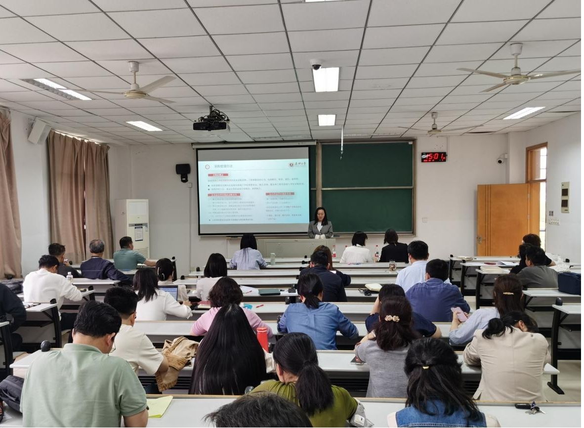计划财务处采购管理主管周燕则从采购政策解读入手,详细介绍了学校采购管理办法、自行采购实施细则等内容,特别强调了采购过程中的注意事项和风险防控要点。