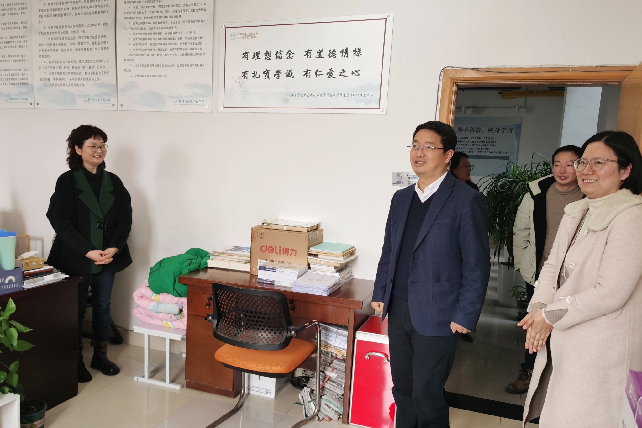 2月26日,新学期伊始,拷贝漫画 党委委员、副校长於建明到材纺学院走访慰问教职工,为学院教职工送上诚挚祝福与殷切关怀,并调研指导新学期开学工作情况。