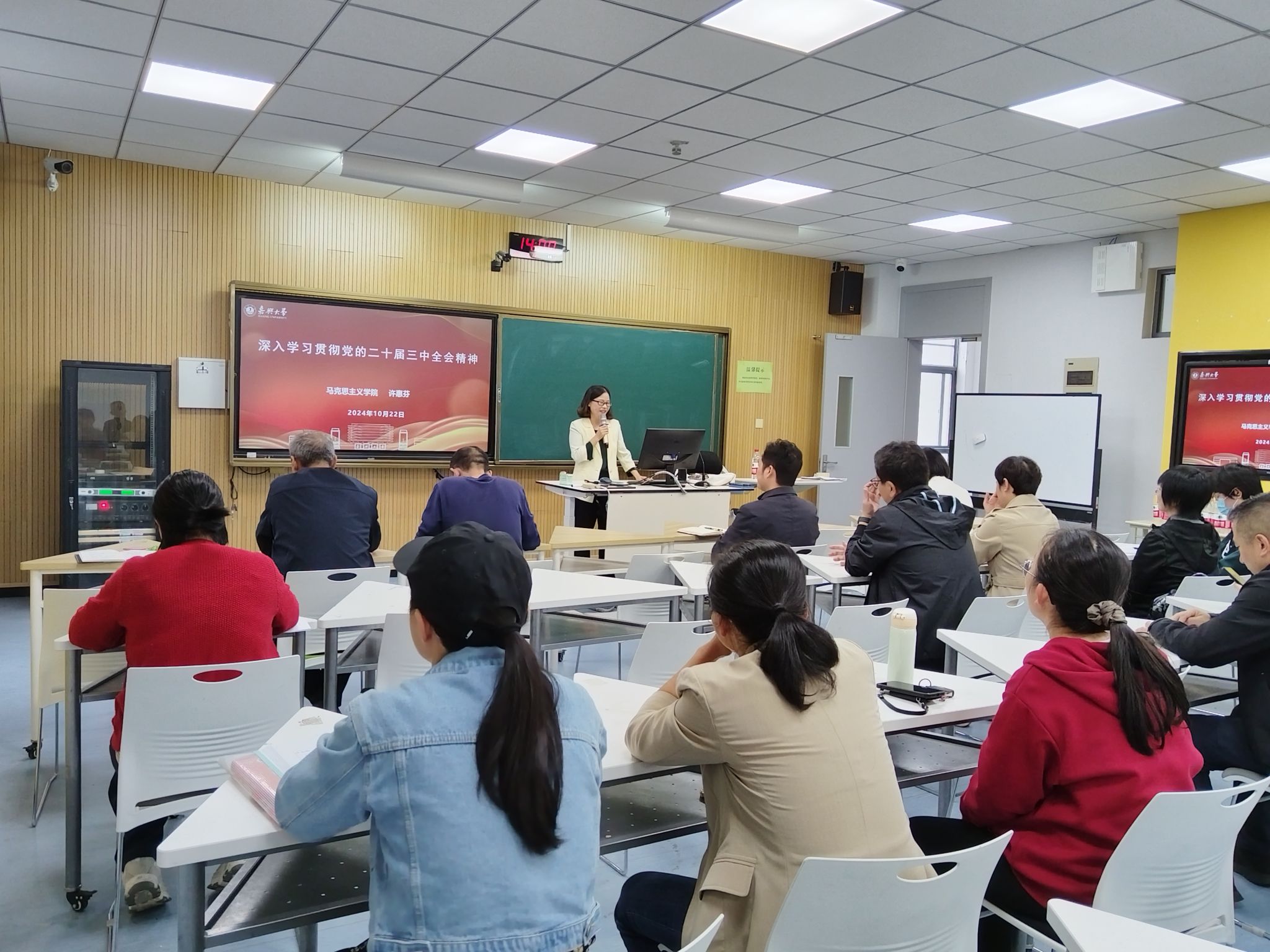 10月22日下午,拷贝漫画 在崇礼楼302教室举办党的二十届三中全会精神宣讲会,邀请马克思主义学院副院长许惠芬教授来学院作专题宣讲报告。学院全体教师党员参加学习,学院党委书记黄芳芳主持会议。