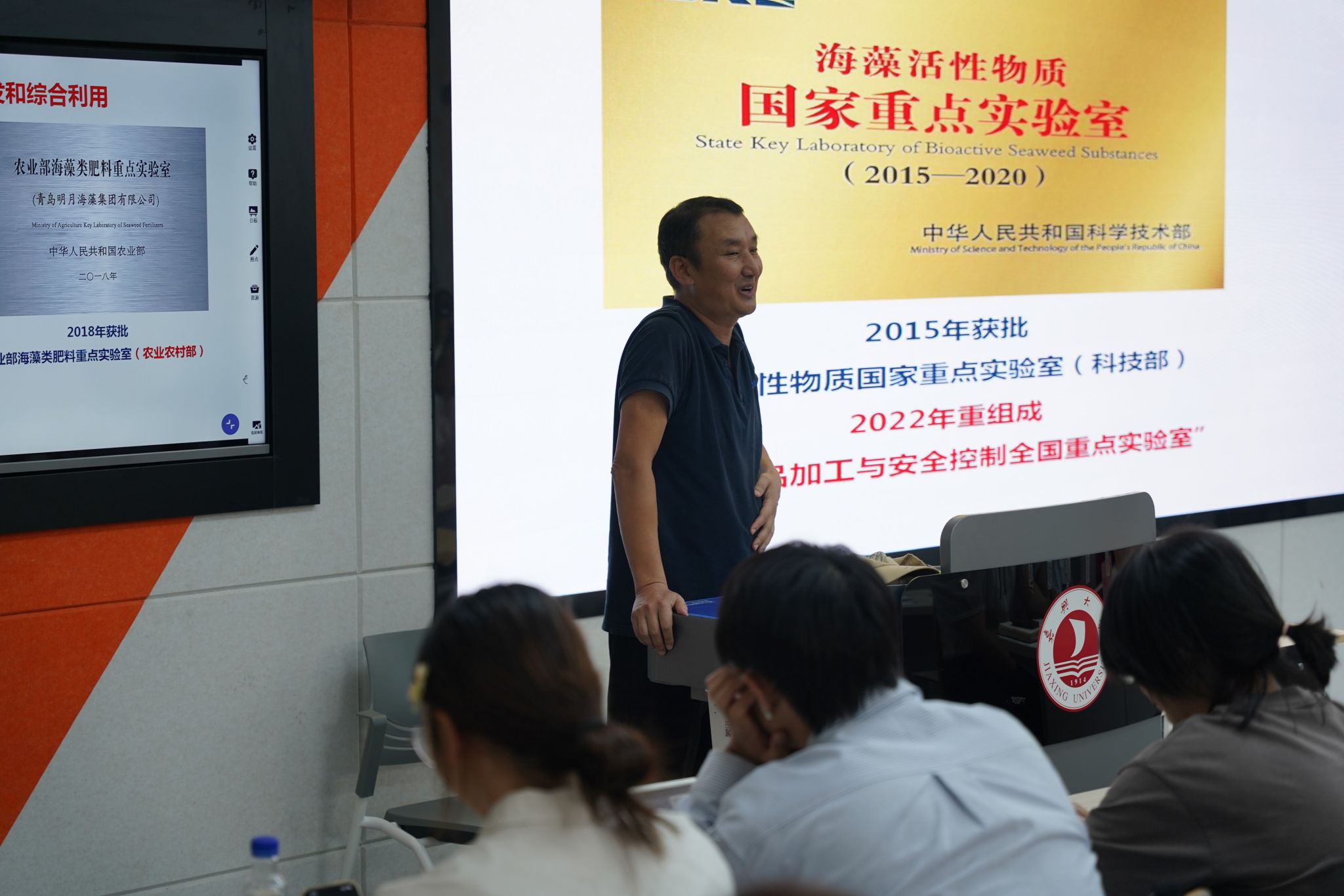 在明德楼259室举行第1期“大先生”成长沙龙活动,邀请了科技部海藻活性物质国家重点实验室原主任、泰山学者秦益民教授为大家分享其“深耕浩瀚海洋、书写海藻之用”的科研历程。学院70余名师生代表参加活动,院党委书记黄芳芳主持活动。