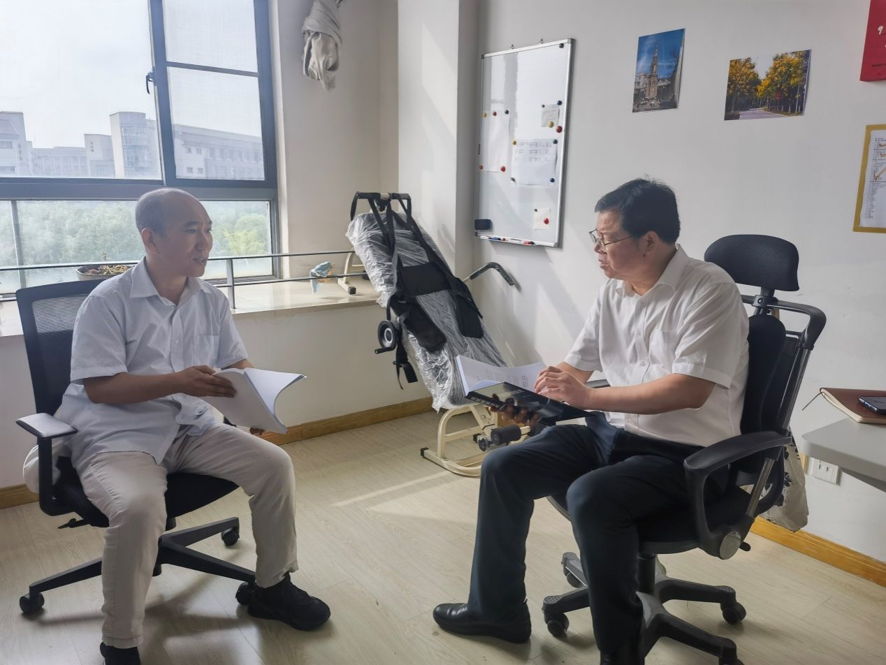 在座谈会之前,吴云达还走访了赵健伟教授,他与赵健伟进行了亲切的交谈,关心其生活、工作情况,并感谢他对学校发展作出的突出贡献。希望他继续立足本职,发挥专长,引领壮大科研团队,为学校高质量推进地方一流应用型大学建设做出更大贡献。