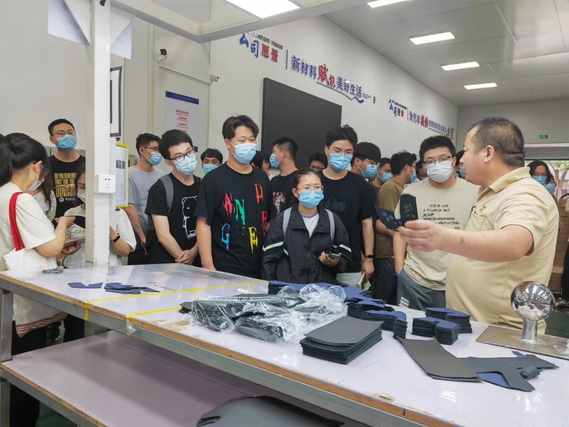 公司热烈欢迎了学生的到来,在参观之前,公司人事部陈经理首先向大家介绍公司情况、参观流程及注意事项,并重点强调了现场的安全问题。然后在企业车间负责人的带领下分成三组,参观了皮坯车间、涂饰车间、裁片车间和检测室,在参观过程中,负责人详细向学生介绍了坯革性质、工艺流程、生产设备及检测方法和设备。