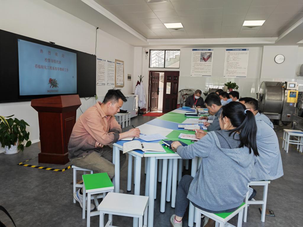首先,轻化工程专业与“现代皮革化学教学团队”负责人罗建勋老师、“皮革分析检测教学团队”负责人马贺伟老师分别对团队所属课程的分布、建设成效与发展构想进行了汇报,全体教师对其进行了热烈的讨论。其次,罗建勋主任以校级一流课程之“皮革整饰化学及工艺学”为例讲解了一流课程的“两性一度”要求、建设目标、创新点与成效等,李书卿老师、王亚平老师说明了“毛皮工艺学”课程的改革方法、成效及培育校级“线上+线下”混合式一流课程的规划。随后,罗建勋主任以校级首批课程思政课程之“专业导论(轻化工程)”为例,就课程思政在专业课程中的挖掘与实施进行了分享,全体老师进行了讨论与交流。最后,王以华老师、邓燕老师分别进行对本次教研活动进行了点评和指导,并参观了轻化工程智慧实验室。