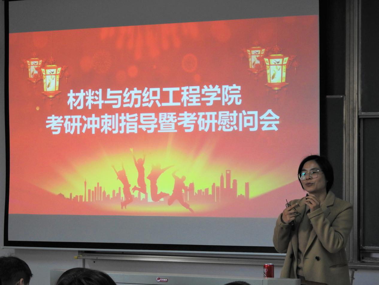 会上,考研指导老师从心态调整、复习方法、考试技巧等多个层面进行指导交流。高材系主任张葵花老师告诉大家要在紧张的复习中劳逸结合,捋顺复习思路,不忘初心坚持到底;纺织系主任沈加加老师通过对2022年就业形势分析,肯定同学了选择和坚守,同时提出身体健康才是生命的本钱,要科学规划最后22天,不要透支身体健康,扰乱正常作息;随后韩万里老师嘱咐同学们要心无旁骛,要有自信但不能盲目自信。接着李书卿老师与罗建勋老师分别对考研过程中的注意事项、答题技巧与心态问题进行讲解。最后凡欣老师做出九字总结——稳目标,拼心态,重坚持,告诉同学们“研途”有学院老师陪伴支撑,鼓励大家冲刺阶段全力以赴,并与同学们约定“明年研一,一研为定”。