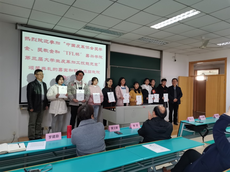 在14号楼516教室隆重举行“中国皮革协会奖学金、奖教金”和“‘TFL杯’嘉兴学院第三届大学生皮革加工技能竞赛”颁奖典礼,中国皮革协会秘书长陈占光先生、海宁市皮革行业协会秘书长龚慧红女士、社会合作处副处长徐进、拷贝漫画