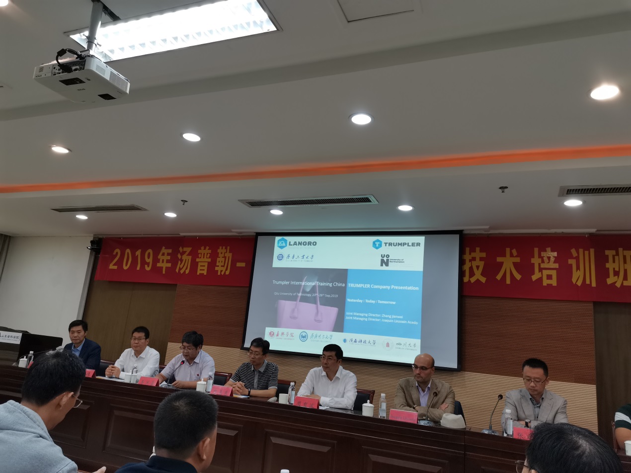 院长易洪雷教授代表开办轻化工程专业皮革方向的院校感谢德国TRUMPLER公司对行业人才教育的大力支持和齐鲁工业大学对培训班的周到安排,并给培训班的学生们提出殷切希望。典礼后,组织参观了德州兴豪皮业有限公司。