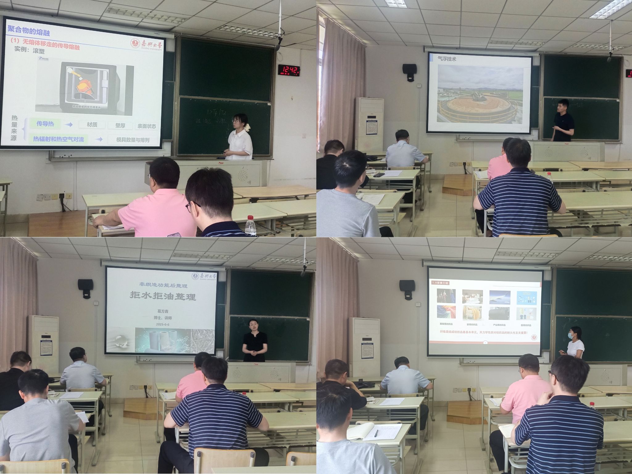 2025年6月6日中午,拷贝漫画 在崇礼楼506教室进行了青年教师助讲培养试讲考核。试讲考核专家小组由学院督导、系部教师代表等五位专家组成。2024年新入职教师葛方青、张天蒙、柯亚楠、易玉丹分别针对《非织造功能后整理——拒水拒油整理》《废水处理技术》《纺织材料学——纤维的拉伸力学性能》《聚合物的熔融》四个课程主题进行了说课和章节试讲。