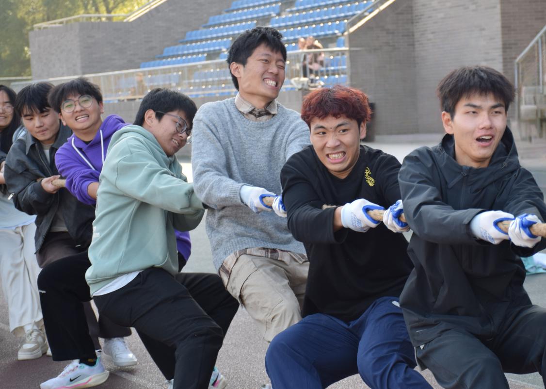 本次运动会共设置“飞黄腾达”、“一圈到底”、“舞动绳弦”、“毽步如飞”、“螃蟹赛跑”、“天地开花”、“力拔山河”及“座席争锋”八个集体项目。比赛中,师生并肩协作,全情投入。“飞黄腾达”考验专注与耐心,“一圈到底”和“舞动绳弦”展现团队默契,“螃蟹赛跑”和“天地开花”引发阵阵欢笑,现场气氛不断升温。压轴项目“力拔山河”与“座席争锋”更是将比赛推向高潮,师生在竞技中彰显斗志与凝聚力,场边加油声此起彼伏,震耳欲聋,瞬间点燃全场热情。