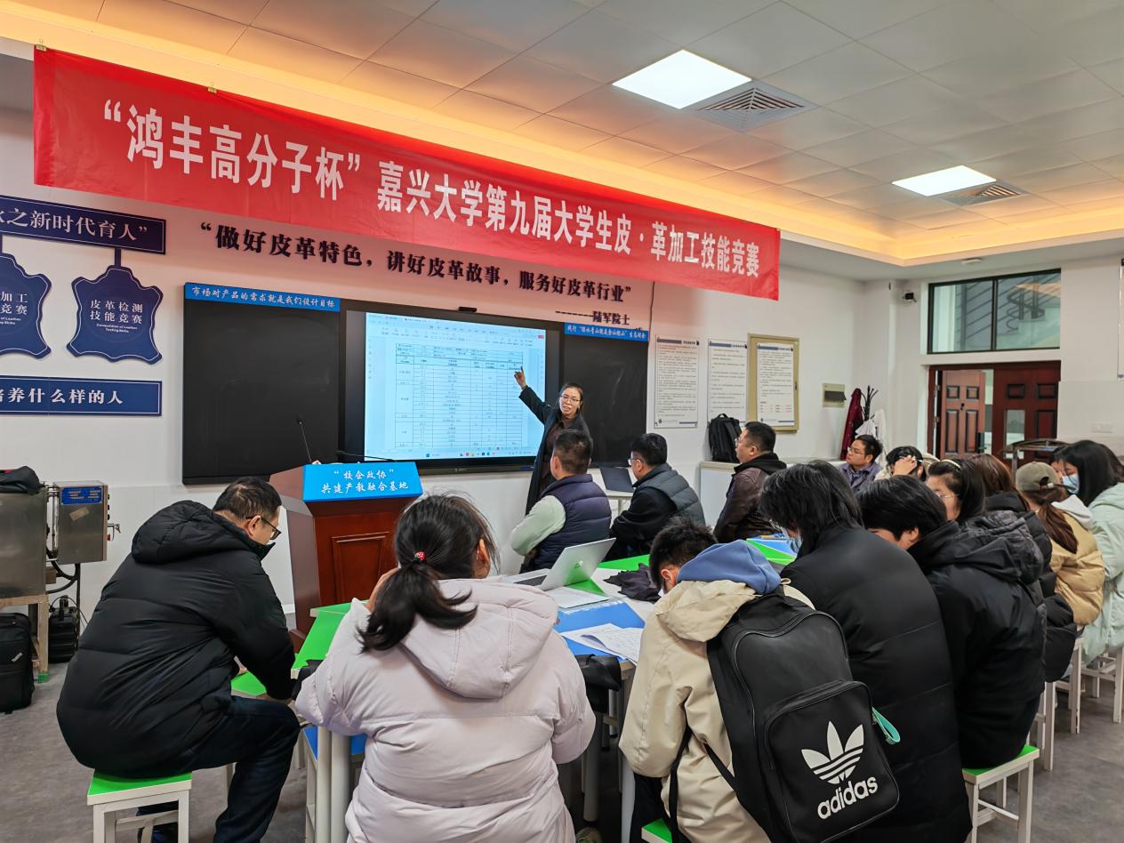 本次竞赛包括理论考试和实践操作。理论考试为皮革整饰技术知识与问题分析,实践操作环节由徐州鸿丰高分子材料有限公司结合市场需求命题,并由多家企业专家组成的裁判组进行评审。经严格评审,共评选出一等奖两组、二等奖两组、三等奖五组。评委们对参赛学生的表现表示高度赞赏,认为参赛学生的实践水平很高,优秀的设计工艺和实施效果可达市场要求,并希望同学们以竞赛为契机,加强理论学习和实践操作,提升自己的专业技术水平,为行业贡献并实现自我价值而努力。