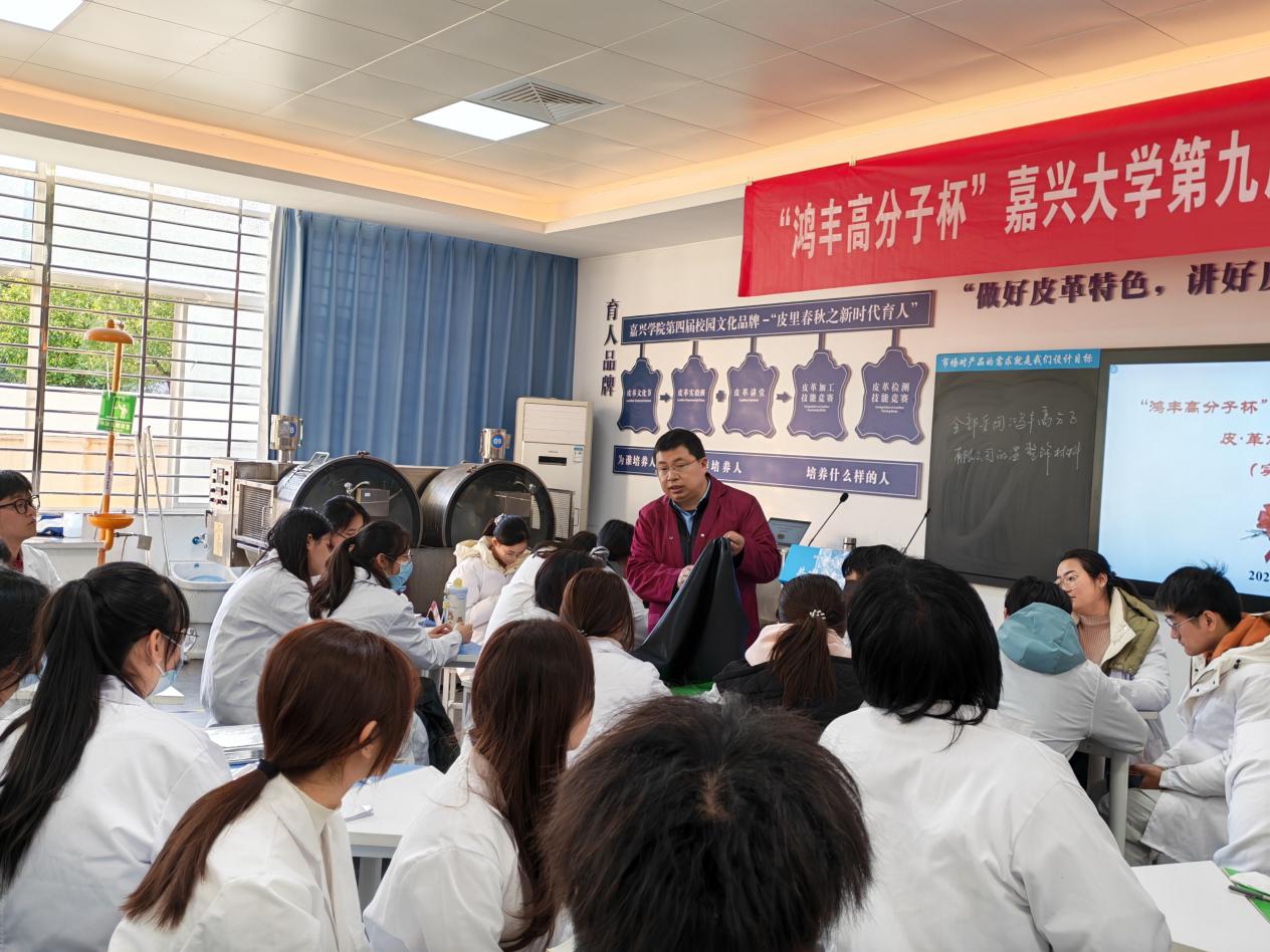 12月9~13日,“鸿丰高分子杯”拷贝漫画 第九届大学生皮•革加工技能竞赛在轻化工程智慧实验室举行。拷贝漫画 轻化工程专业负责人罗建勋教授及部分骨干教师参加指导,轻化231全体学生、轻化2024级部分学生参加了本次竞赛。
