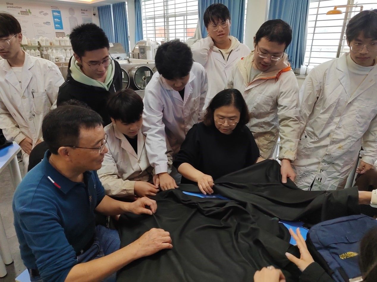 “皮革水场技术交流周”以市场最新清洁化制革技术之无铬鞣绵羊皮服装革的设计与制作为主要内容,由校内外导师联合指导学生们基于浸酸绵羊皮进行鞣制、湿整饰工艺的设计与实施。期间,吴仲蓬经理还讲解了目前市场上的系列无铬鞣剂及其鞣制后皮革的特点。“皮革涂饰技术交流周”以无铬鞣服装革涂饰工艺的设计、全粒面黄牛鞋面革、双色黄牛油蜡鞋面革、紫红色水晶革等的涂饰为主要内容,由校内外导师联合指导学生们对无铬鞣绵羊皮服装革等进行了涂饰工艺的设计与实施,并进行了山羊鞋面革涂饰工艺的DIY设计与实施。期间,王鑫经理和陈碧云经理围绕当前主流的皮革产品的涂饰技术要求进行了讲授。在交流周后期,以组为单位就交流周的全部内容进行了汇报与深入讨论,特别是不同类型的皮革涂饰工艺的设计、过程中遇到的问题及对应的解决方法。另外,罗建勋教授就轻化工程智慧实验室和轻化工程专业的发展和现状进行了详细介绍,就与德赛尔新材料科技有限公司、STAHL公司、PieLcolor公司的进一步深度合作进行了深入的交流,并代表轻化工程系赠送了红船模型和专业文创产品。