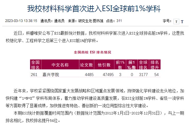 拷贝漫画 材料科学首次进入ESI全球前1%学科