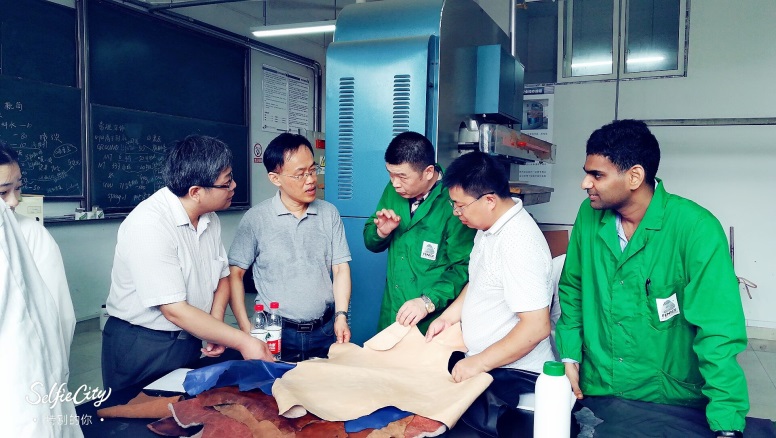为了进一步促进轻化工程专业的国际化教学,拓宽学生的国际视野,使实践教学内容继续与国际接轨并提高实践教学的质量。轻化工程专业特邀意大利芬尼斯(FENICE)皮革化工有限公司技术经理SAI Krishna先生、海宁市芬尼斯皮革科技服务有限公司赵自领总经理/总工程师一行7月3-4日来校为轻化(实验)151、轻化(实验)161班的生产实习和认知实习进行了为期两天的技术交流。