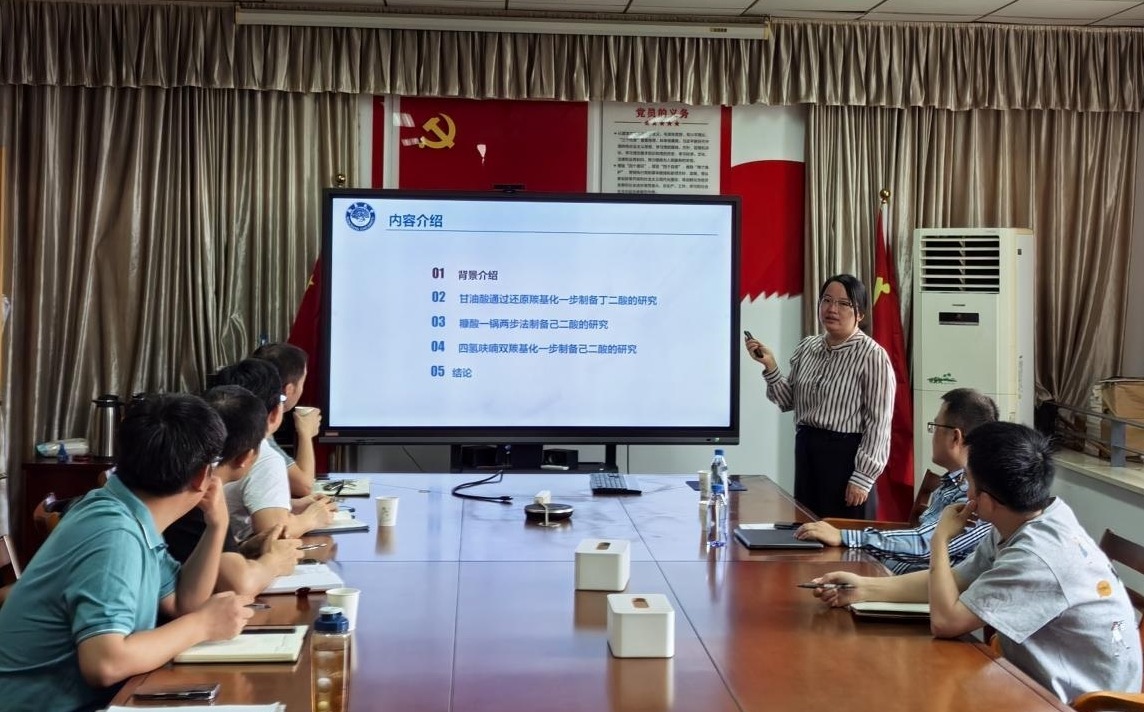 讲座中,杨维冉教授围绕生物质可再生能源的高效转化与绿色化学品合成的前沿课题,系统介绍了其团队在生物基二元羧酸制备方面的最新研究进展。杨教授重点讲解了羰基化反应中催化剂的设计思路、反应机理的深入解析以及关键中间体的定向调控策略,并展示了部分实验成果在生物基聚合物合成中的初步应用。她强调,该研究不仅为生物质高值化利用提供了新思路,也为实现“双碳”目标贡献了化学力量。