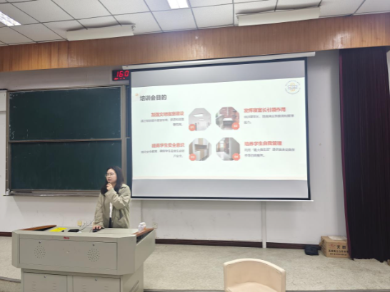 学生住宿管理规定》等展开系统性讲解,并就寝室卫生标准、寝室违纪认定及处理、寝室安全、生活配套服务、学生日常请销假以及安全注意事项等深入解读,引导寝室长要做好寝室的“模范生”、做好寝室的“督察员”,做好寝室的“调解员”,为营造安全、文明、和谐、卫生的寝室环境做出贡献。