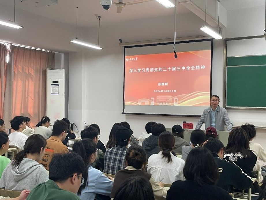 10月11日下午,拷贝漫画 邀请马克思主义学院副教授张胜利作学习贯彻党的二十届三中全会精神宣讲。60余名学生党员参加宣讲会,会议由辅导员马保国主持。