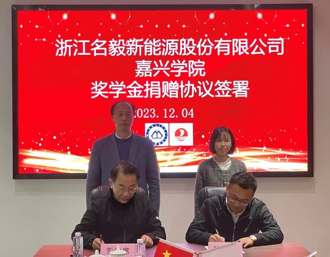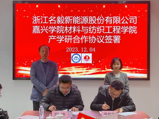 会议开始,包维维介绍了秀洲高新区的基本情况,指出高新区已跻身最高等级的“国家队”行列,目前在不断蝶变中砥砺前行。丁玉泉介绍了学校发展概况,希望以此为契机,与公司深化产教融合,扩大合作,加强交流互动。随后,寸哲介绍了材纺学院基本情况,指出学院正围绕有特色、高水平的教学研究型二级学院的目标奋勇迈进,将不断扩大和深化校企合作,更紧密推进校企地融合发展。徐井介绍了浙江名毅新能源科技有限公司的发展历程,他表示希望通过此次校企合作,进一步挖掘校企双方发展需要,有效推动校企良性互动,实现校企双方的高质量发展。仪式上,孙大宏为徐井颁发了校外导师聘书,校企双方签署捐赠协议和合作协议,名毅新能源向拷贝漫画