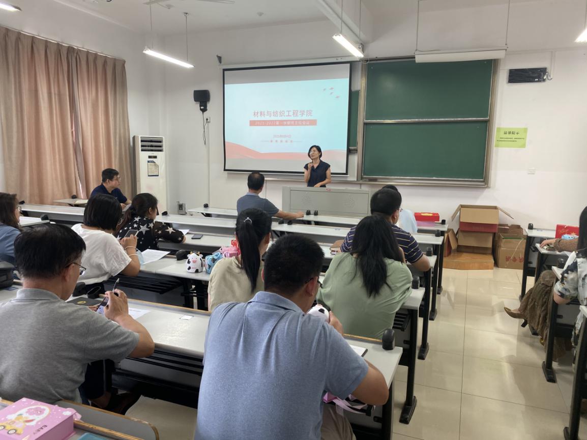 会上,首先由辅导员王晓莹就新学期即将开展的各项工作做了详细的部署和安排,并从认真做好个人防护、切实注意人身安全、严格遵守宿舍管理规定、增强网络安全意识、严格履行离校请假手续等六个方面强调了“平安校园”建设的重要性,提倡全体师生在新的学年营造文明、安全、和谐的校园环境。接下来材纺学院党委副书记凡欣就新学期学生工作重点展开交流。她结合学院发展的痛点与堵点,指出接下来学生工作重点是强学风、抓考研、促就业,具体工作思路围绕一个目标,提升两大优势,深化三项教育,促进四个融合,要求全体班主任深入学生,赢得人心,为学生的成长成才贡献力量。最后院党委书记韩宝明讲话,要求大家共同筑牢安全防线,创建平安和谐校园。