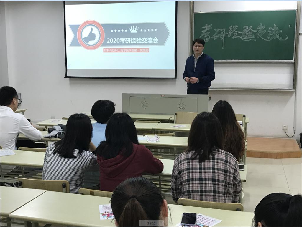 学生的考研热情,帮助学生了解考研现状,明确考研目标,掌握相关考研技巧,材纺学院举办考研经验分享交流会,搭建大学生考研交流平台,助力学院考研工作。