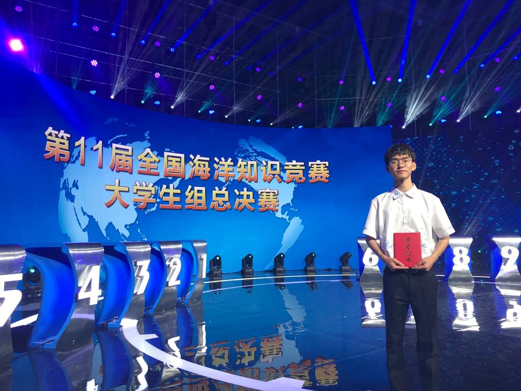 经过前期地区赛、学校推荐、网络答题等方式选拔,浙江省高校中仅浙江大学、浙江工业大学、浙江海洋大学、嘉兴学院取得了参加全国总决赛的资格。经过“一锤定音”,“不可多得”,“智者无敌”等多个环节,徐晓飞同学以总分第一的成绩进入30强,虽然没能进入最后的10强决赛,但也展示出了其丰富的海洋知识储备和现场表现能力。