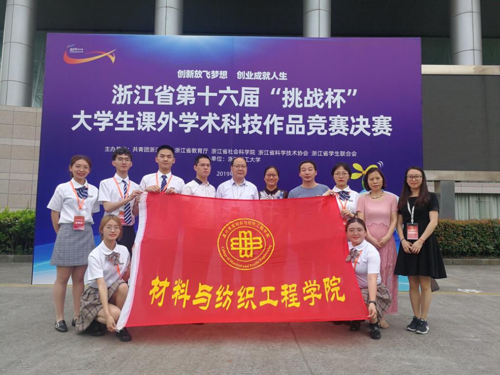 荣获一等奖的是沈加加老师指导的项目《植物染色纺纱数字化开发技术》,二等奖项目是俞巧珍老师指导的《高效防雾霾抗菌口罩的研制》,三等奖项目为敖利民老师指导的《“文化寻踪 古技新承”纺织非遗传承与发展新生态构建路径探究——基于浙江纺织非遗项目保护现状的调查》。