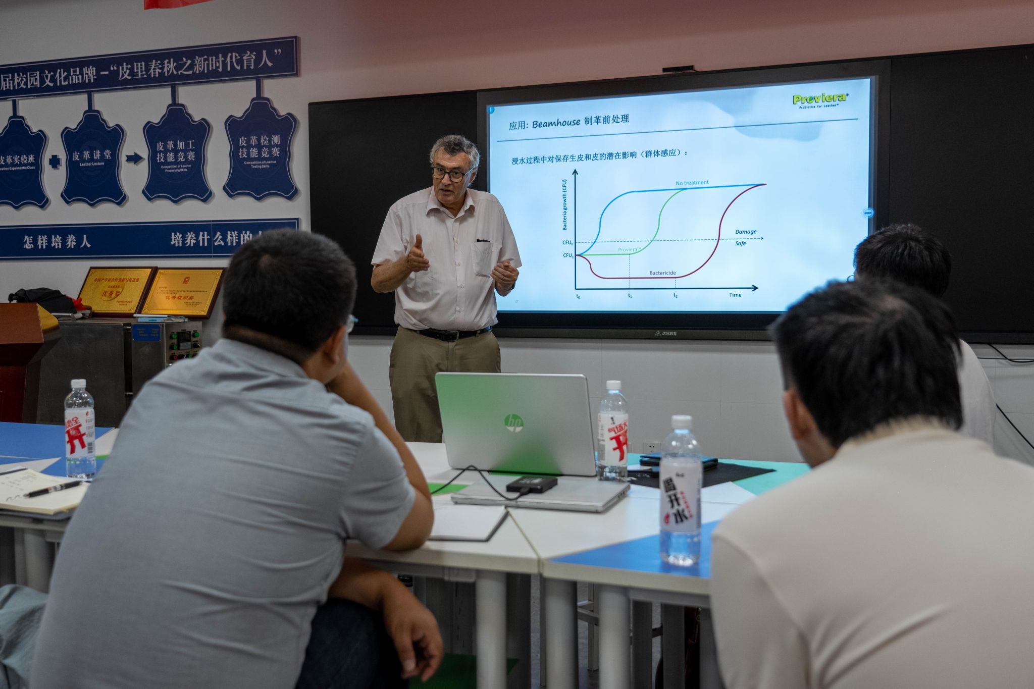 轻化工程专业办学十六年来在人才培养、科学研究、服务行业、国际交流等方面取得的成绩和基于专业特色发展与内涵建设而形成的教学品牌、发展道路等。随后,Dr Joan C.Castell以“Proviera系列生物基新材料在清洁化制革生产中的应用”为题做了报告,指出生物基材料的研发和应用是皮革生产的新需求。