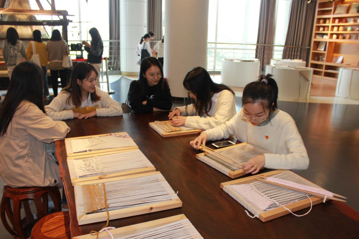 随后,学生党员来到丝绸博物馆,在序厅、近代厅、现代厅、尾声四部分的参观中,了解了中国五千年的丝绸文化以及在传承中华丝绸文脉梦想过程中所做出的贡献和取得的成就。此外,学生党员还现场体验了手工编织,将书本所学与实践充分结合。