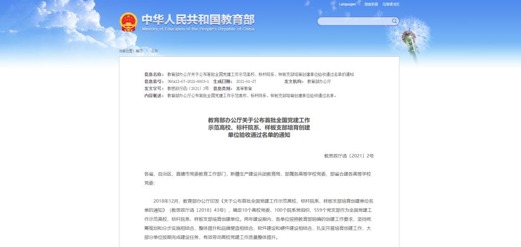 1月26日,教育部办公厅发布了关于公布首批全国党建工作示范高校、标杆院系、样板支部培育创建单位验收通过名单的通知(教思政厅函〔2021〕2号),其中,拷贝漫画