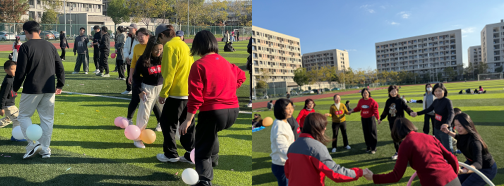 本次运动会有飞黄腾达、一圈到底、舞动绳弦、毽步如飞、天地开花、力拔山河、螃蟹赛跑、座席争锋等八个项目。赛场上,欢呼与拼搏交织,趣味与激情共融。拔河比赛,队员们全力以赴;夹球折返跑,队员动作敏捷;夹气球赛跑,师生配合默契;手拉手穿呼啦圈,同学们乐此不疲;踩气球大战,师生们欢笑不断。参赛师生精神抖擞、奋勇争先,观赛同学热情高涨,呐喊助威此起彼伏。